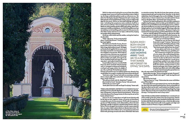Then his tone became even more subdued, almost a whisper, and Lorenzo told me what it was about. With my mouth clenched, I listened intently to this final "honeymoon" between Lorenzo and his wife, who was terminally ill with cancer. She wanted to take one last trip with him. The oncologist, reluctantly, gave permission only if they went to a place where a well-organized hospital could stem a potential crisis. So they chose Lake Como, Italy.