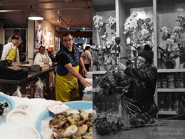 Thanks again for the workshop this weekend. I had a specific approach to street photography in my head, and you two took it in a different direction, with much more interest in sharing space and moments with your subjects. You both looked at my shots as I took them, giving suggestions to composition and approach, and kept us shooting, working with a subject until the "best" photo from that scene emerged naturally in front of us. Some of my better compositions ended up a bit soft, not quite focused on a person's face, yet another lesson in ensuring all the variables in the frame are captured the way you want before moving on.