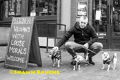 Specifically, with respect to street photography, the workshop helped me with the process of photographing people. And this included discussion about who/what we as a photographer can shoot, and what we can do with what we shoot. Like many, I think, even while working to overcome it I was often nervous about asking to photograph strangers and/or getting close in to people. I could do it randomly depending on the day, but I wanted to get a feeling from someone who does this on a routine basis; especially with a chance to try it out. And in the walk about portion we had good opportunity to both see Massimo in action (unabashedly moving in VERY close to strangers to photograph) and to try it out with his and Myriam’s generous aid and ideas as needed. They were always close by to give advice and were generous with it. We had several impromptu photo shoots with different people in the Gastown district of Vancouver BC, and while most were random interesting strangers in the area, a few were regular locals whose known patience with us was really a good aid. It was fun and confidence building for me. I’m still somewhat nervous, but I think with this workshop I have gained the upper hand.